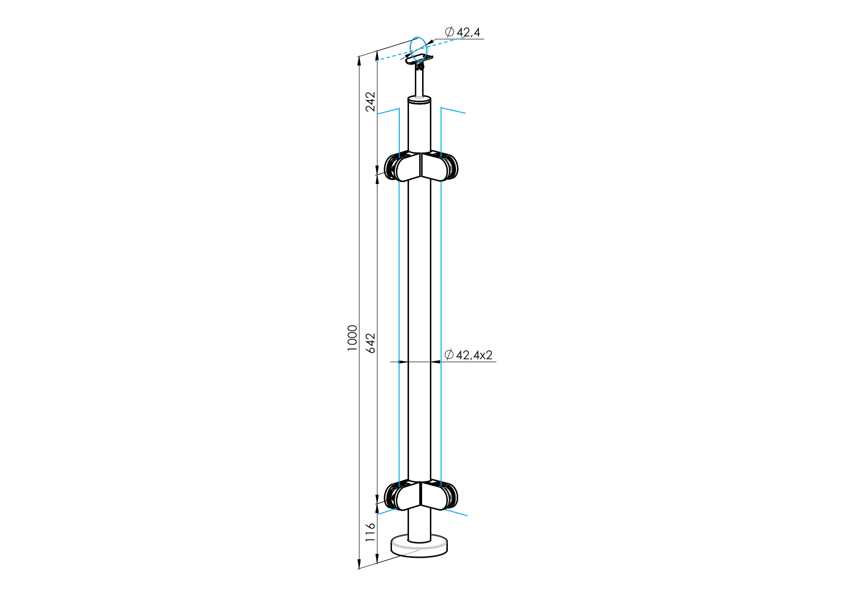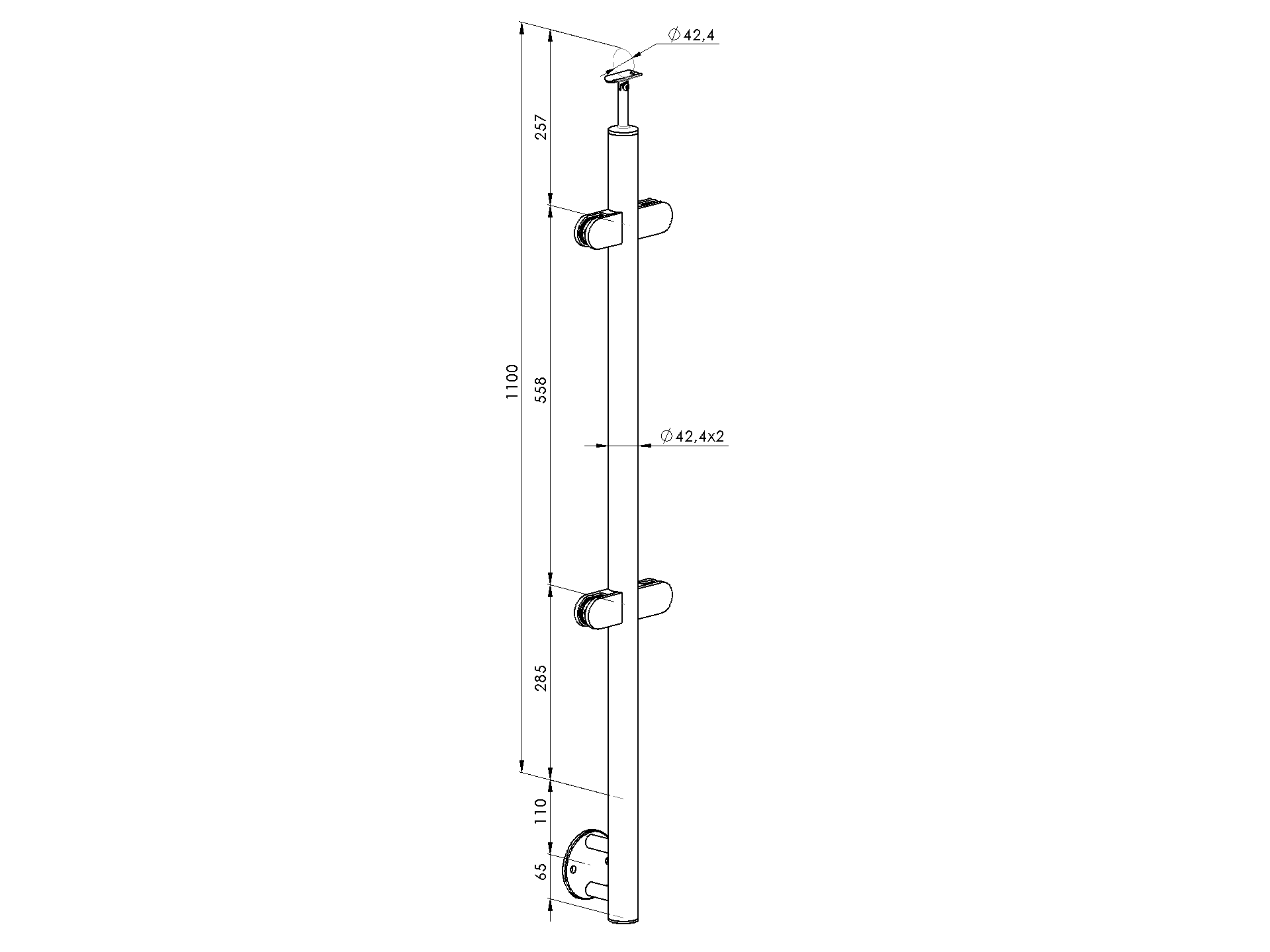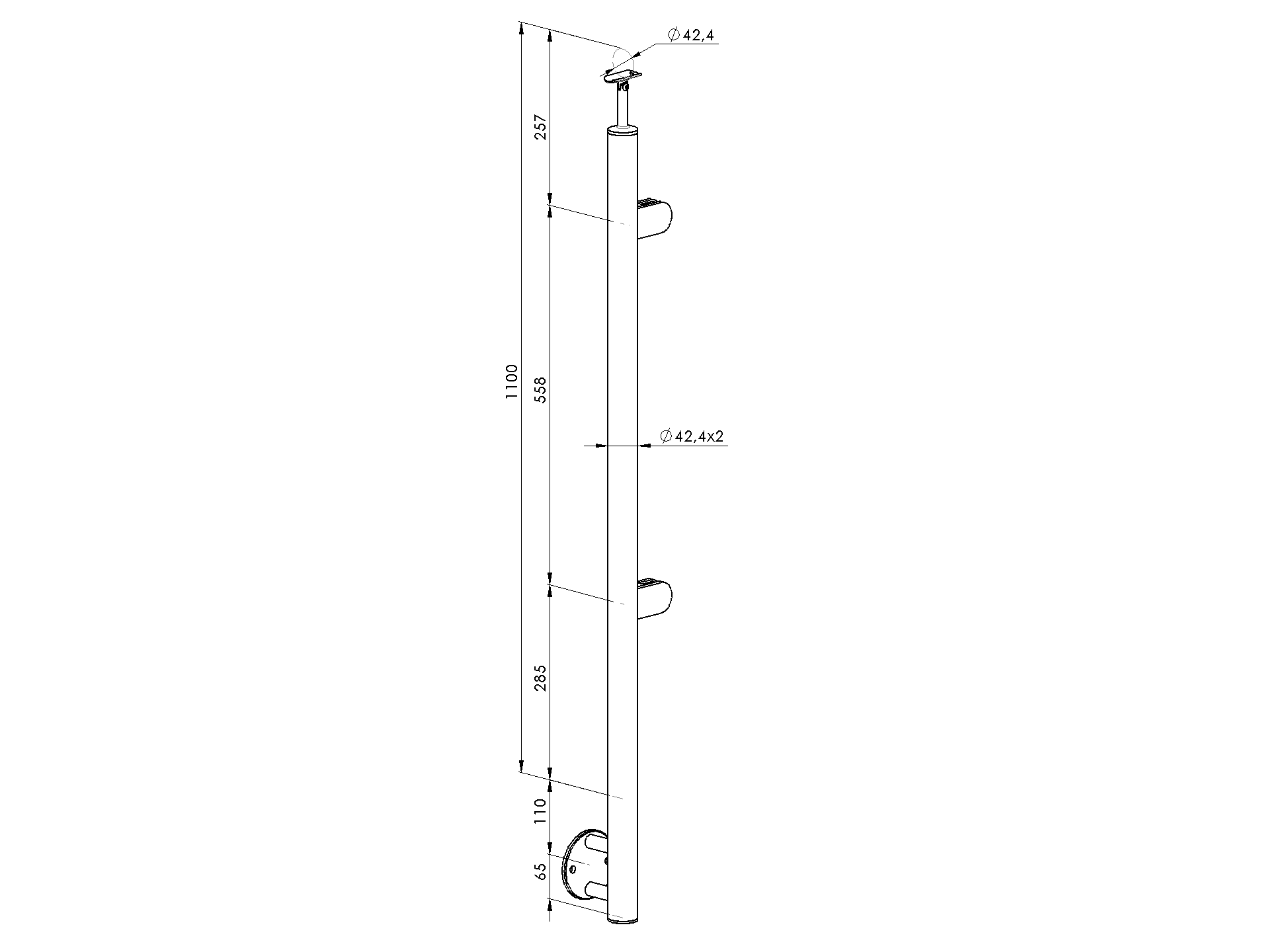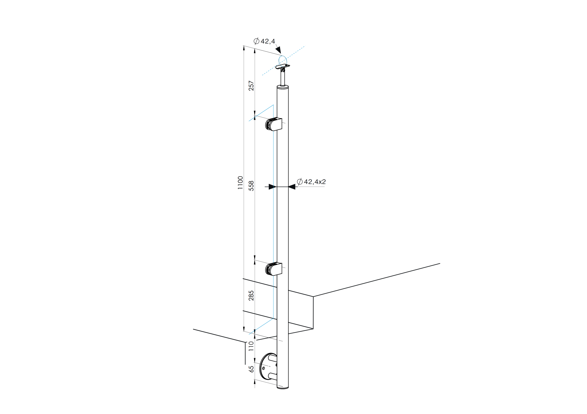 Stĺpik, bočné kotvenie - pravý AISI304, D42,4/2xmo A-BR90-2GR