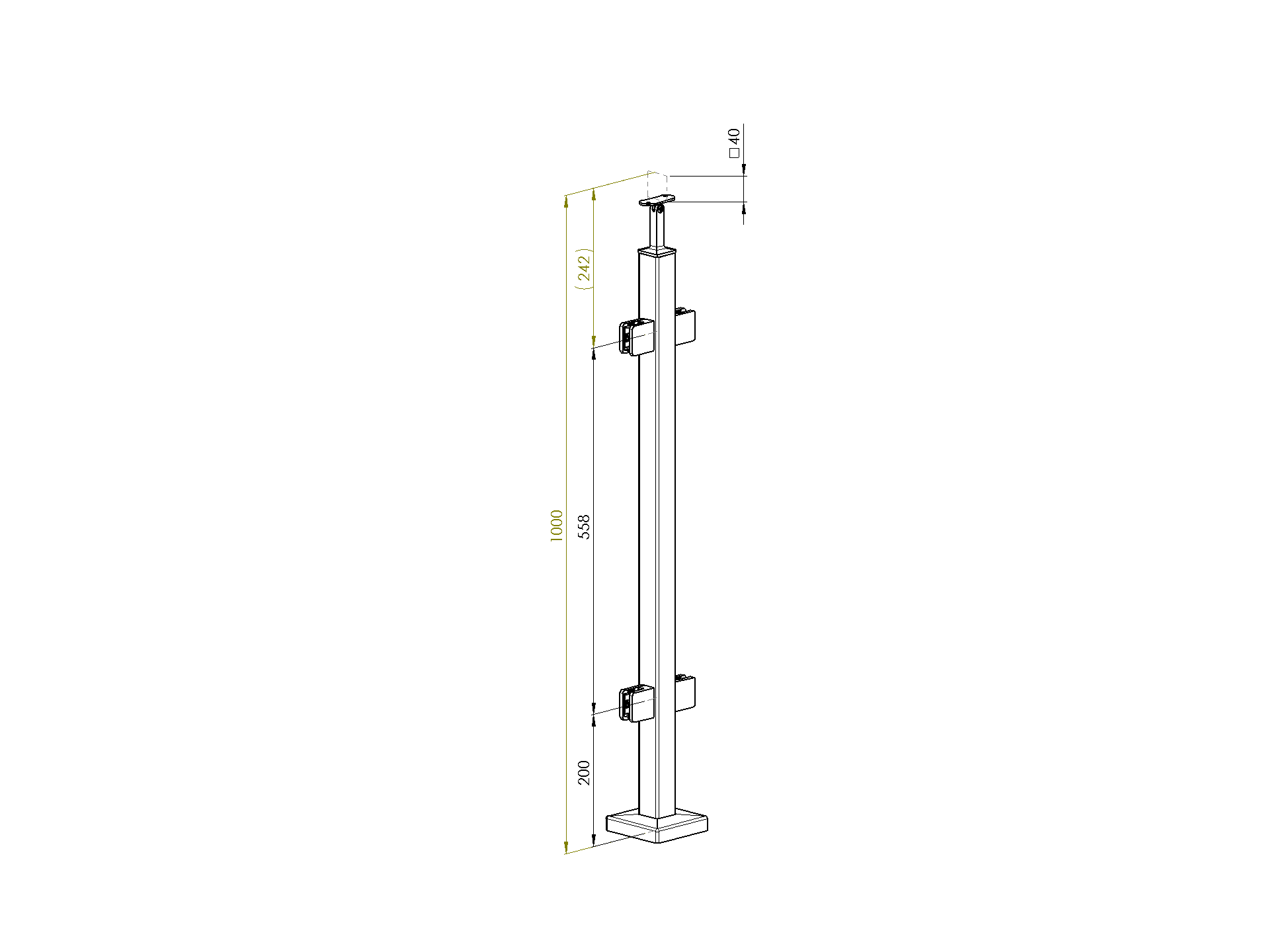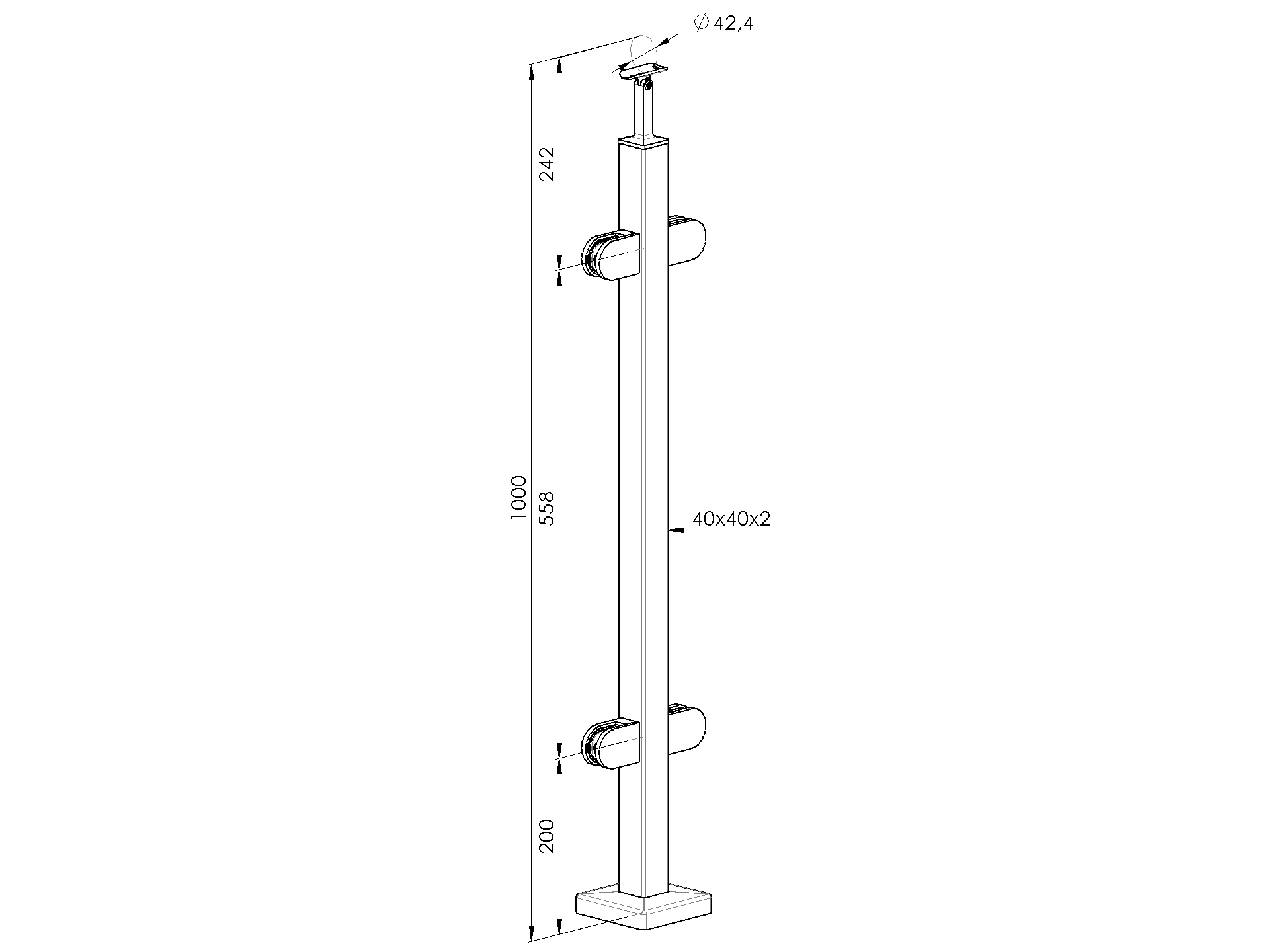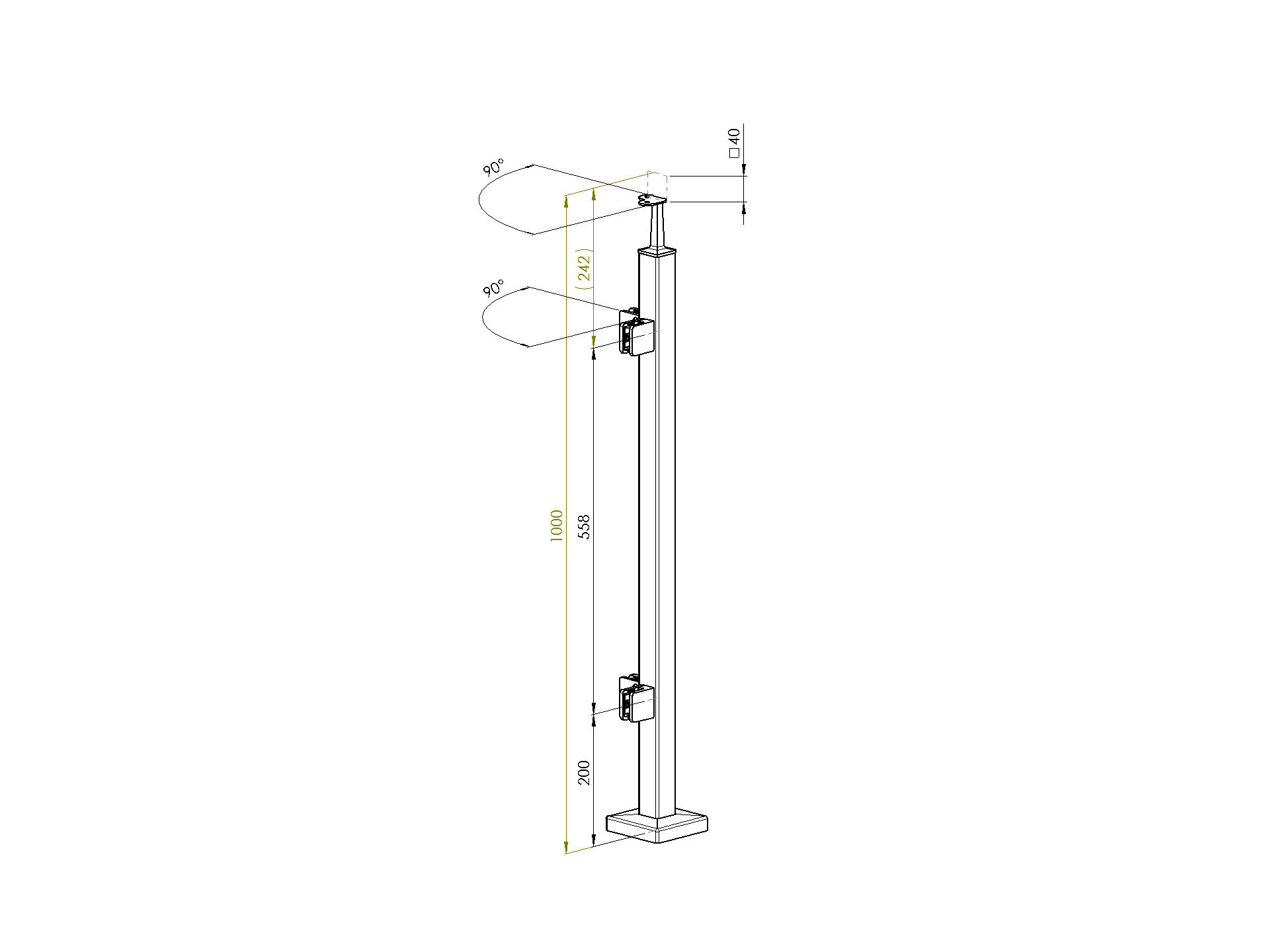 Stĺpik, vrchné kotvenie -pravý AISI304, 40x40x2/2x AJP-VR100-2GR-230