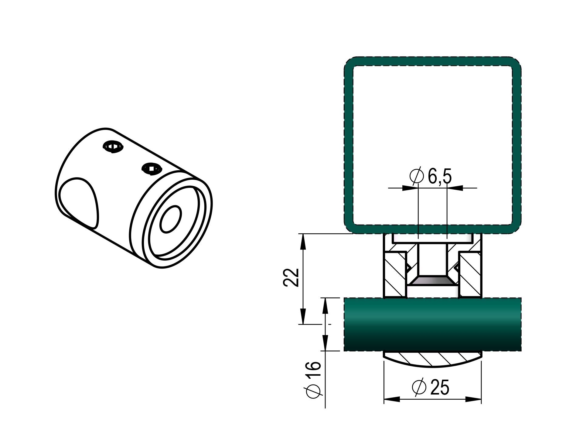 nerezový stĺpik, VK-rovné AISI304, D42,4/5xd12/H11 A-VR110-5D12