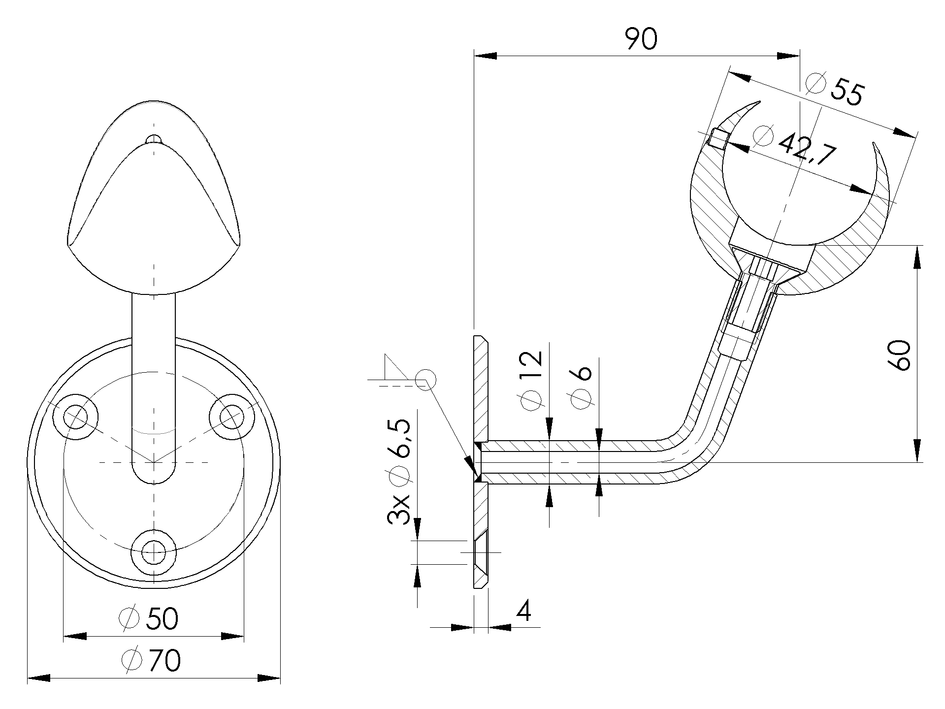 MateriálNerez AISI 304Povrchová úpravaNaturalKotvenieNa stenuSkladová dostupnosť