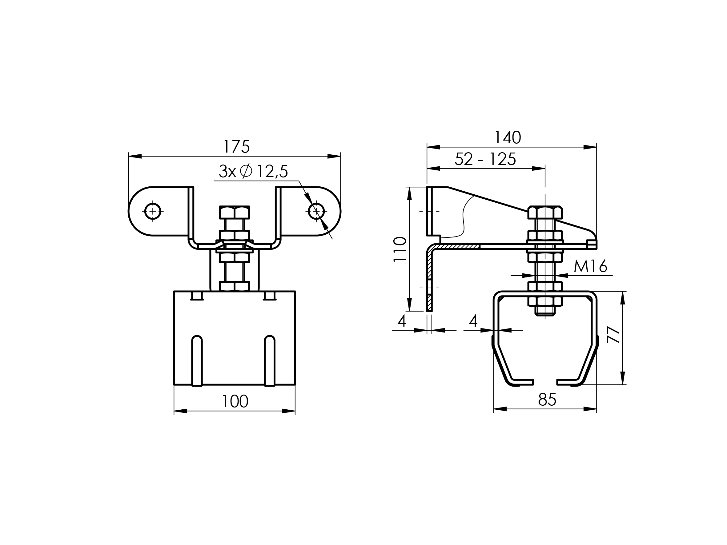 Držiak profilu - vrchný, INOX, H/18-42x54 H8/47V-42x54