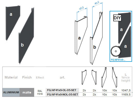 do výšky plotového poľa 1047,5 mm, bez zvárania, na vyskladanie plotového poľa výšky 1047,5 mm, bez prekrytia lamiel s medzerou 5 mm.