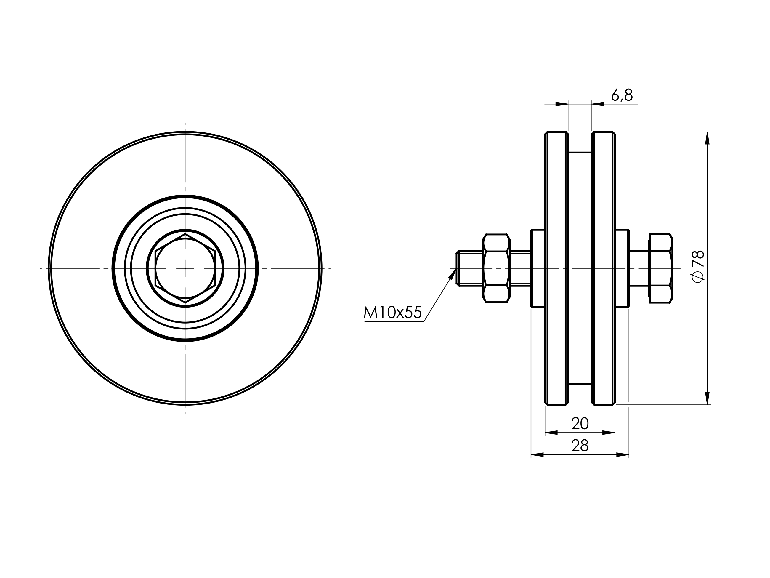 Koliesko pojazdu - H, Zn, D80mm H/06H-80C