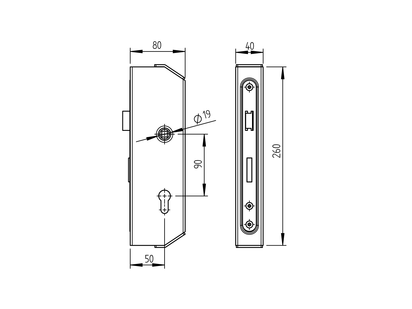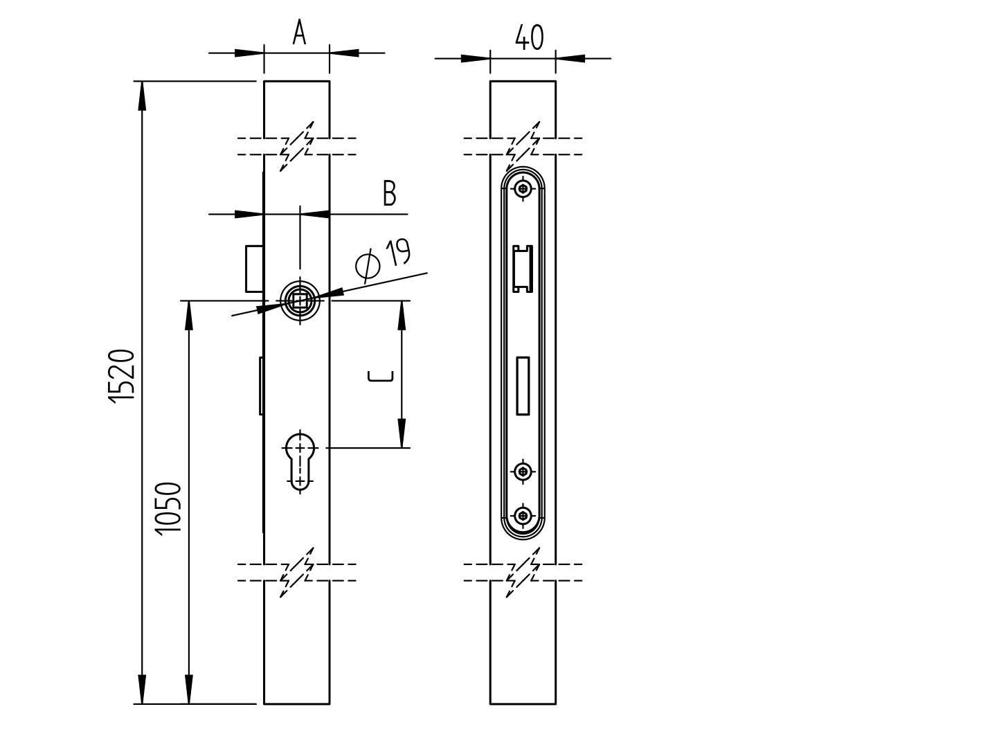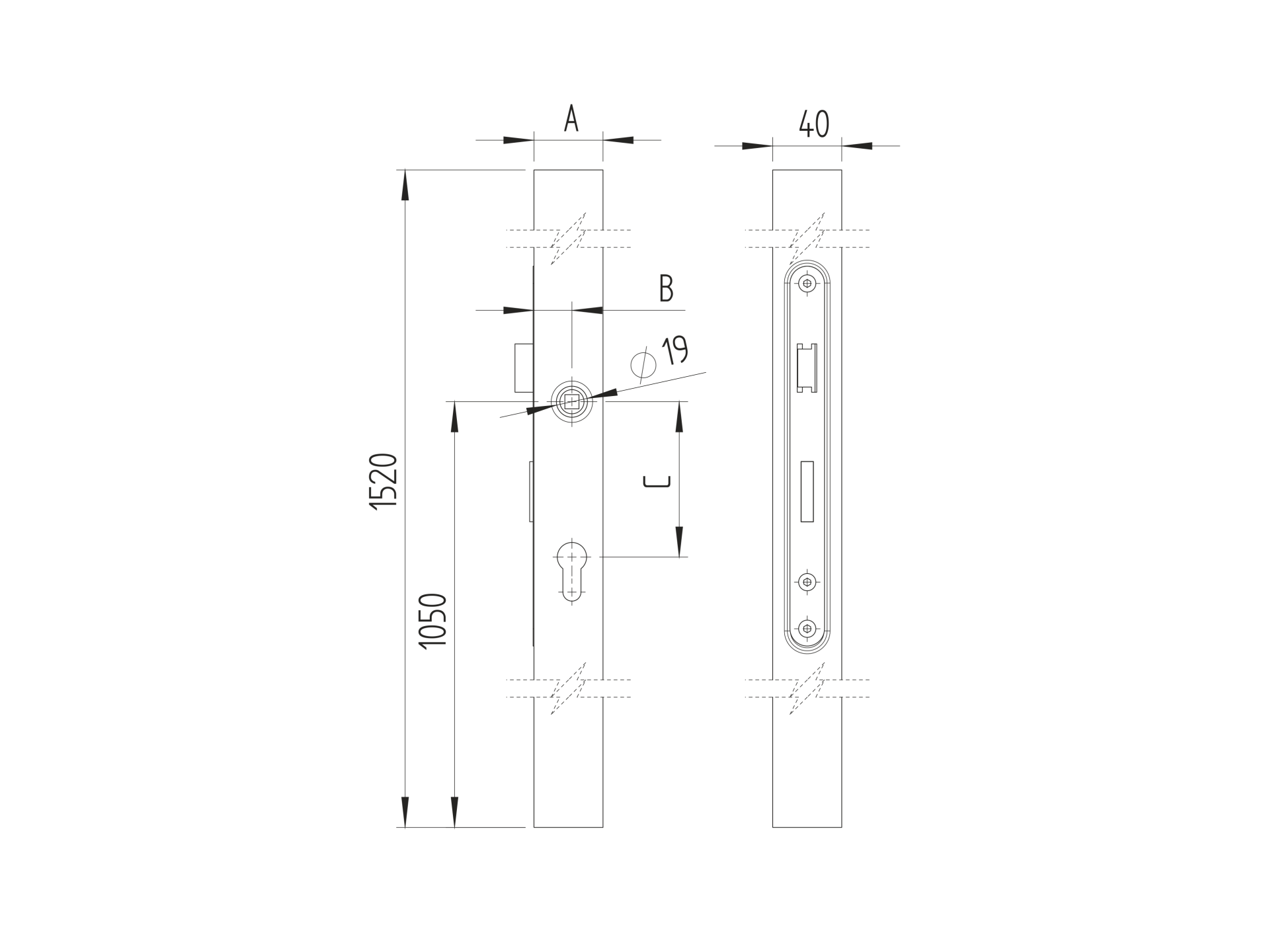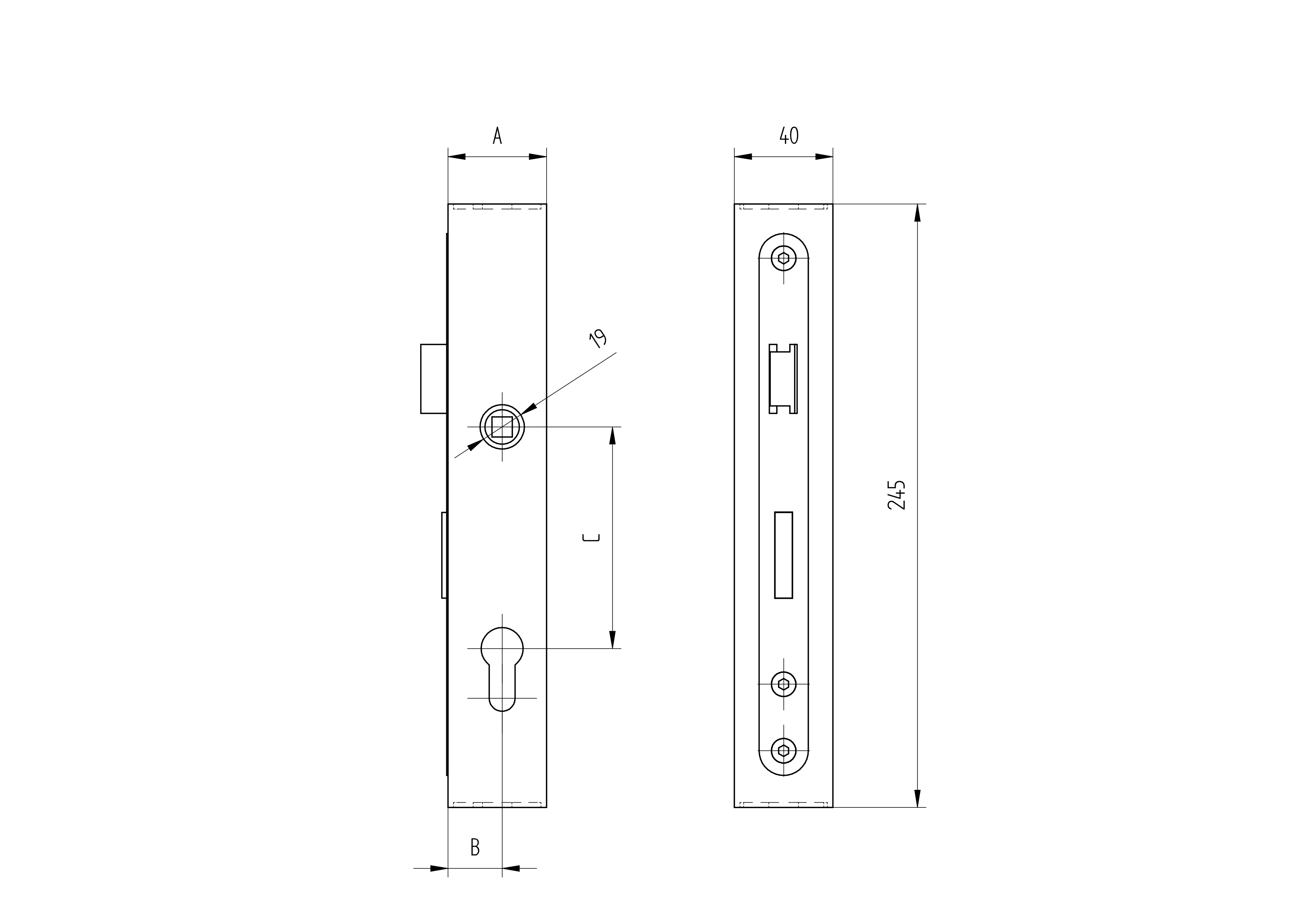 Zámková krabica so zámkom, bez kľučky, 40x40x2000 B1/63-40x40x2000