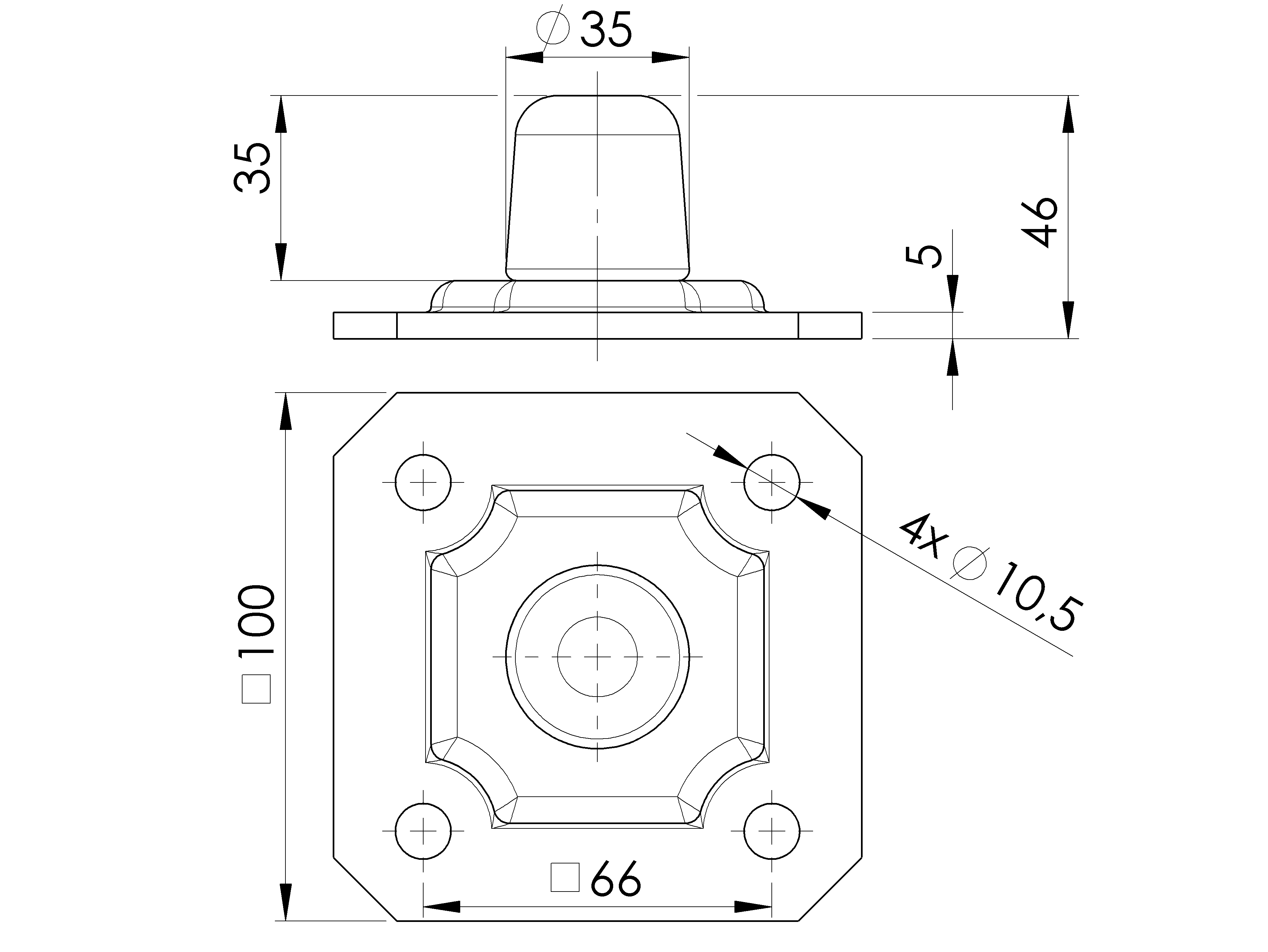 Doraz koncový s kotv.konzolou, Zn H/10B-35x46