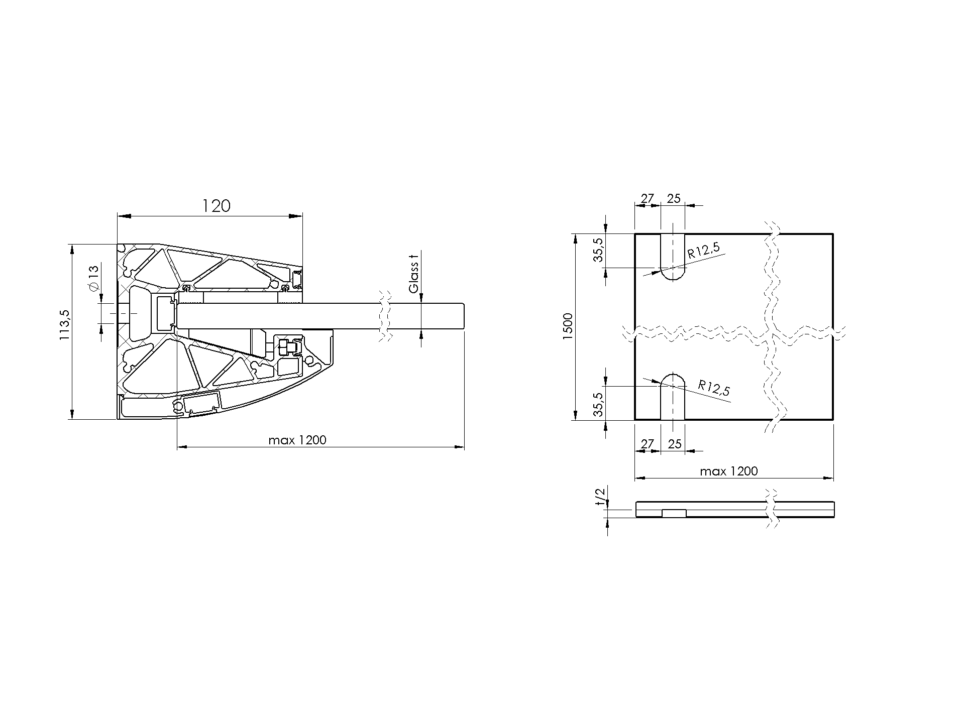14 ksMateriálNerez AISI 304Povrchová úpravaNaturalM6Presklená strieška hliník profil AL/PR7-1500-R7016-SET2