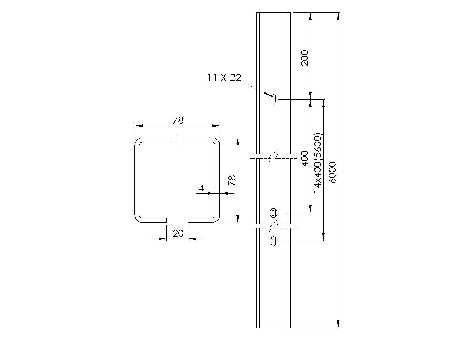 Profil vodiaci s otvormi Zn, 80x80x5mm, L7m H/02-80x80x5-Zn-D-7000