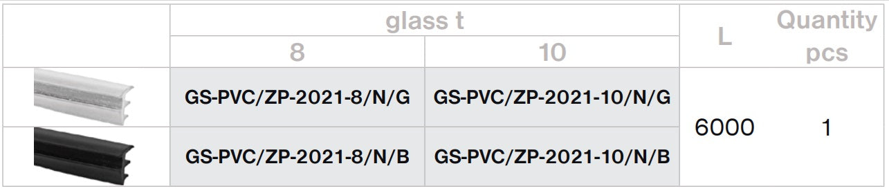 Zasklenie pevne - tesnenie profil GS-PVC/ZP-2021-10/N/B