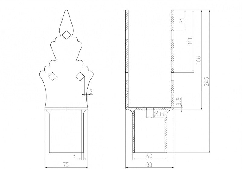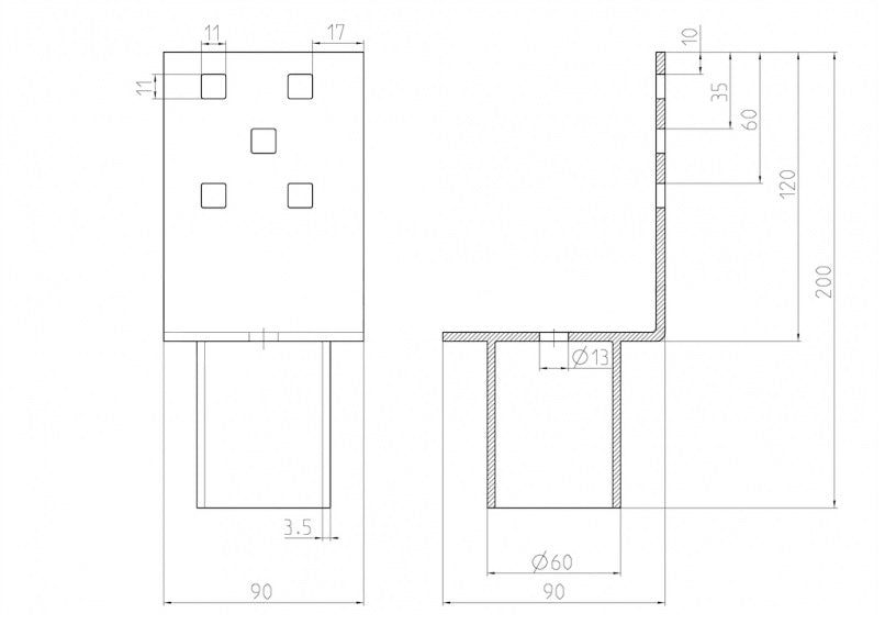 Nadstavec na zemnú skrutku Zn "U" 70x70x90x60mm YFB01ZN070X070X090X60
