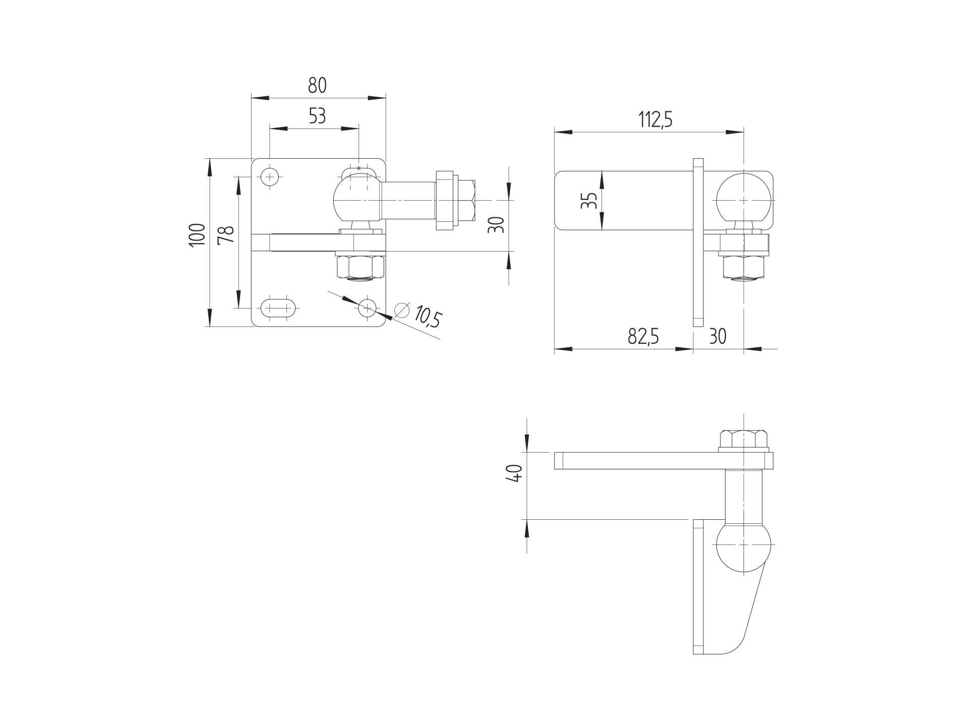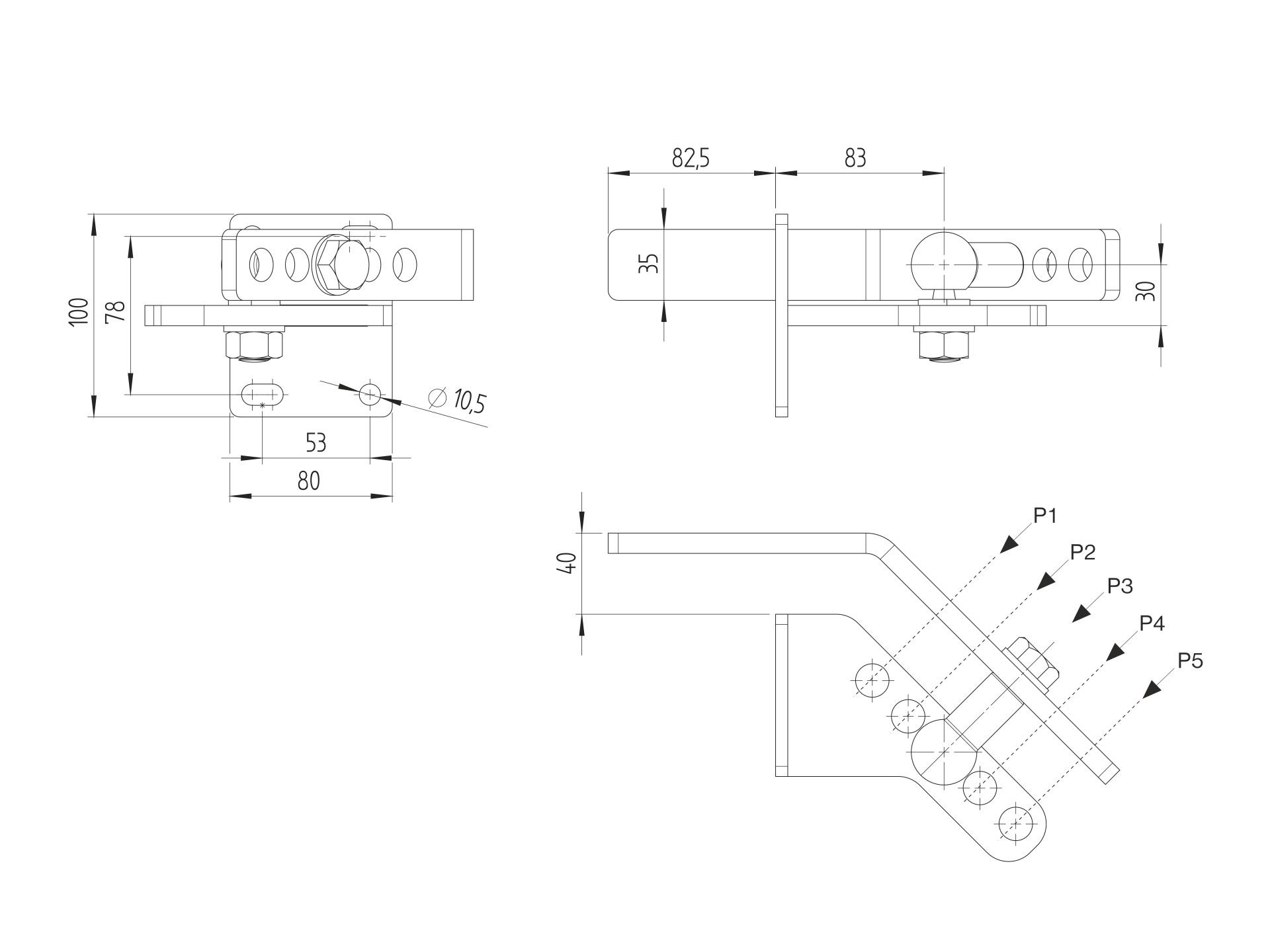 Off-axis hinge, top 120kg D4/78V