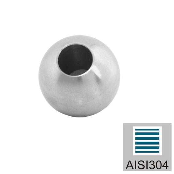 Ball top 20mm, for bar 10mm, stainless steel AISI 304 satined, glued