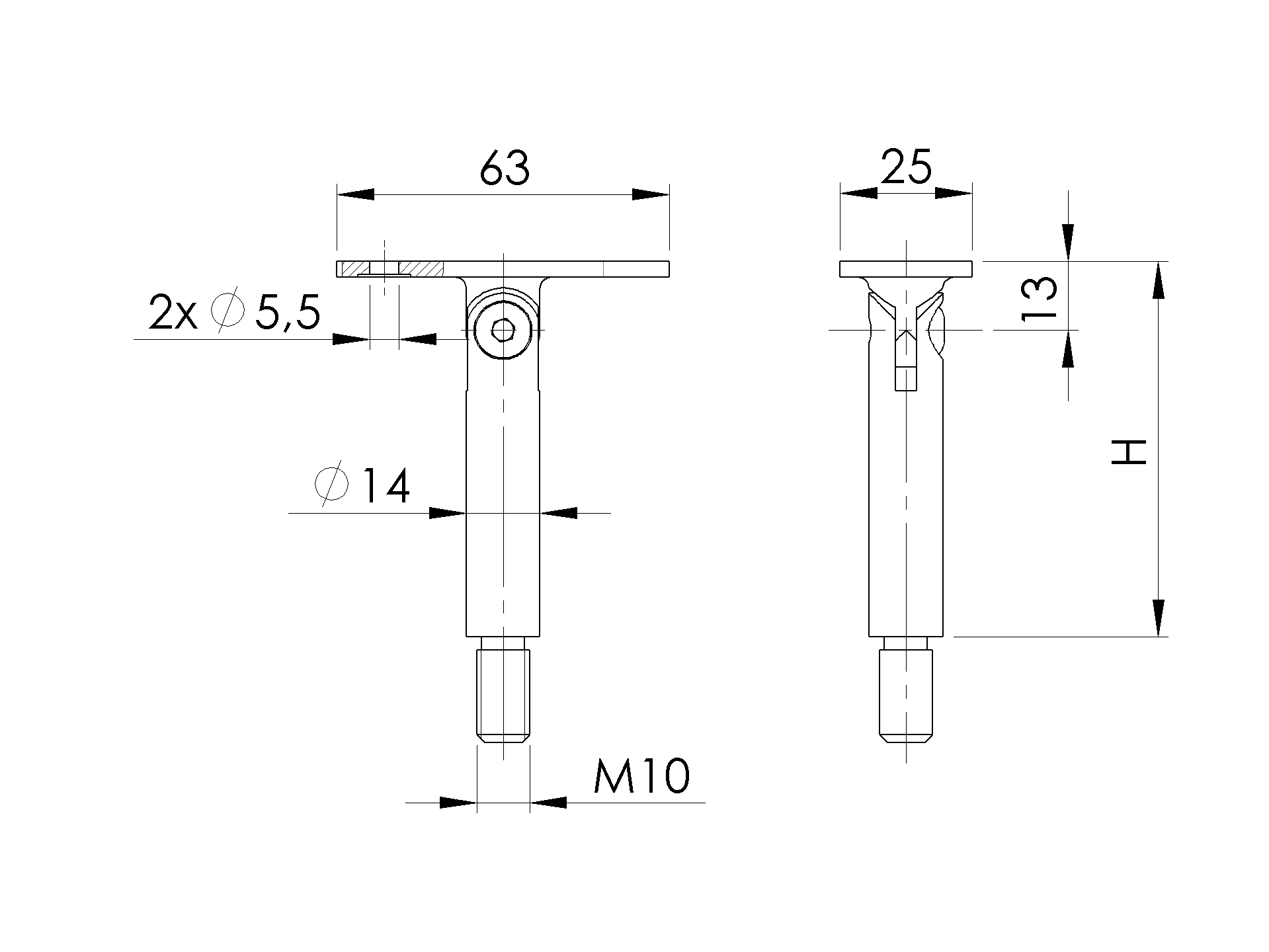 MaterialStainless steel AISI 304Surface finishPolishedM10Stock availability