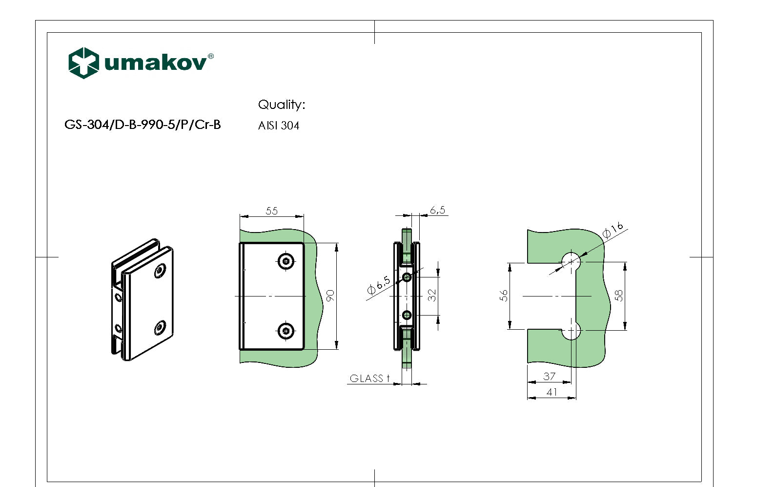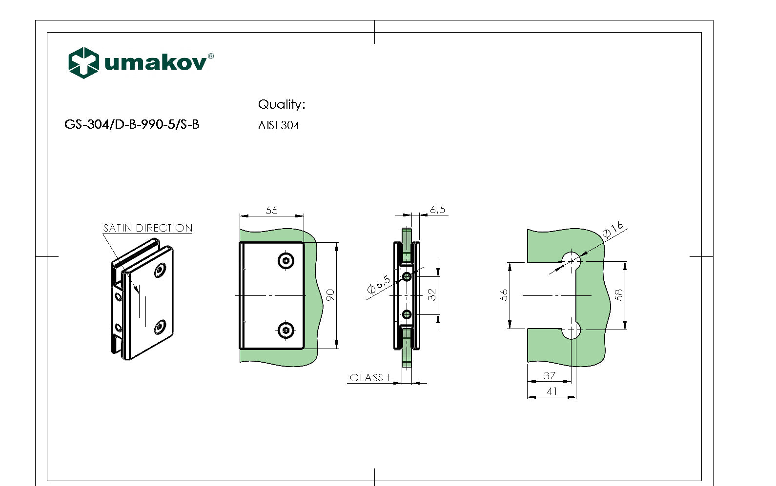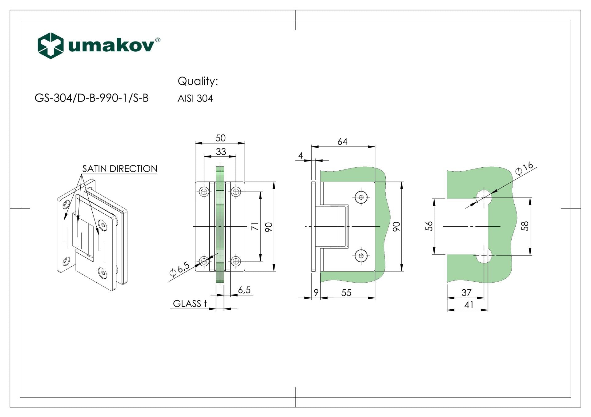 Hinge for glass door AISI304, GS-304/D-B-990-1/S-B