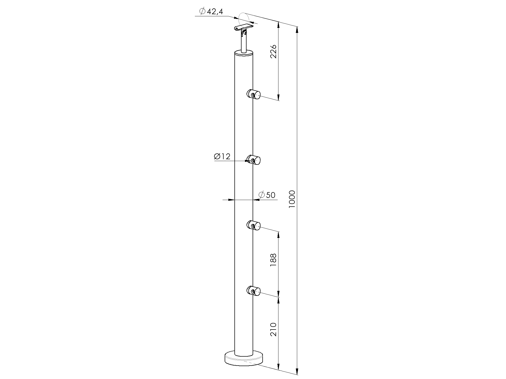 Oak pole D50, 5xd12mm, h=100cm, VK - stairs WD-VS100-5D12