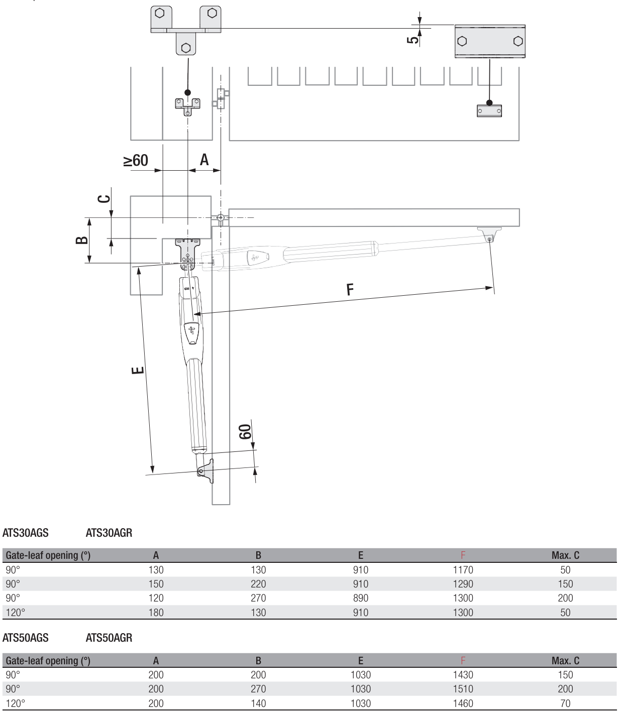 Possibility to anchor the drive on a wide post, the distance from the axis of the gate wing hinge to the edge of the post can be up to 200mm.