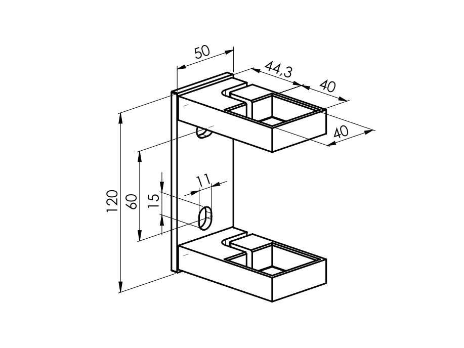 The lateral rectangular post anchorage is a structural element used to firmly attach the post. This type of anchoring is often used in architectural and construction projects to ensure the stability and safety of the railing. It is used in various applications, such as railings on stairs, balconies, terraces or other private spaces. The anchoring is designed to be unobtrusive and aesthetic, thus contributing to the overall appearance of the structure. It contains 2 holes that are used for anchoring.