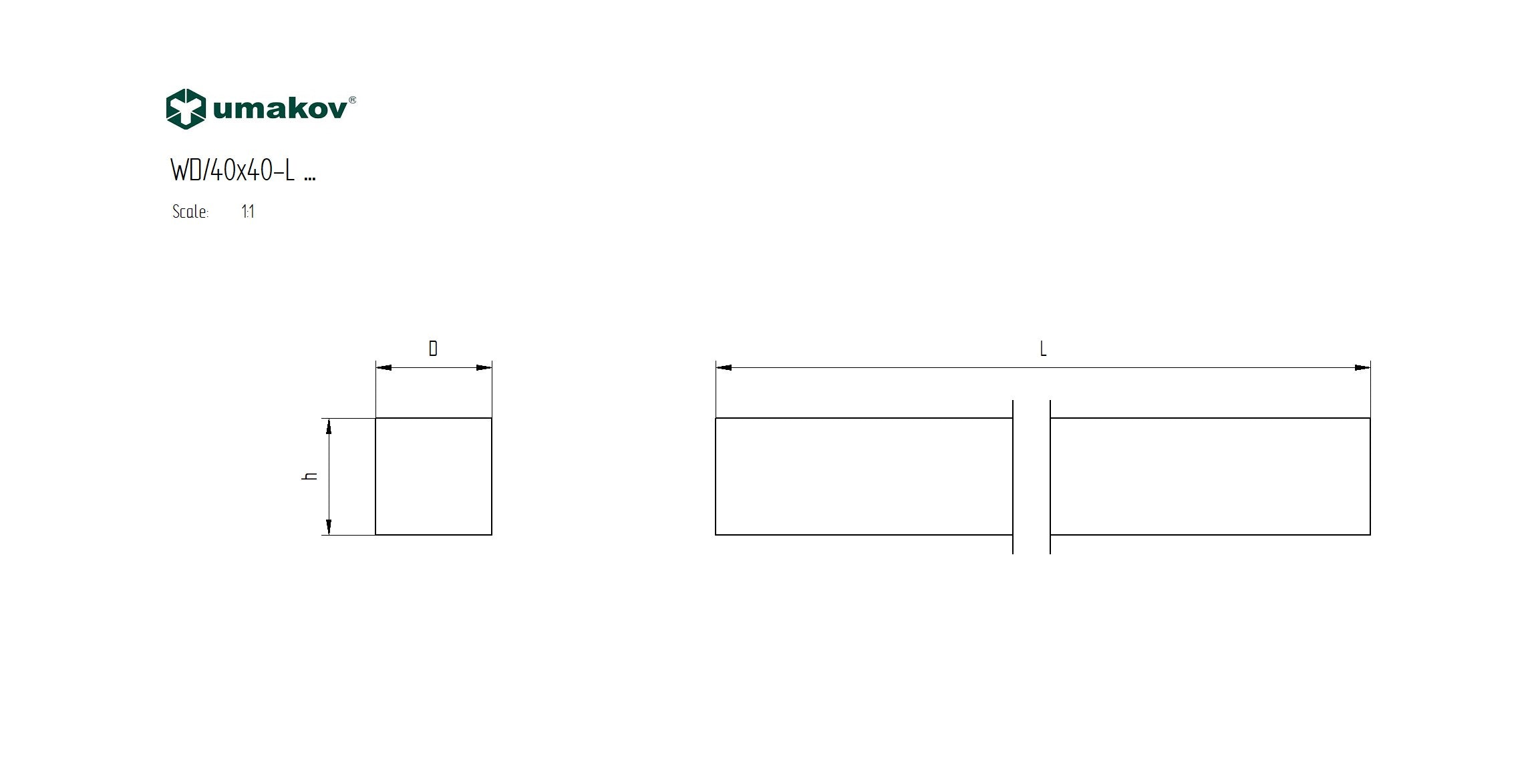 Material: Wood Oak, Surface finish: Raw, L: 3000, Handrail: 40x40 - filled, D: 40, h: 40, Phi sq: 40x40