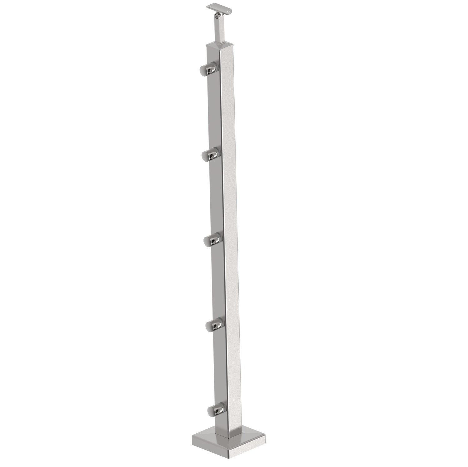 Felső rögzítésű, rozsdamentes, szögletes oszlop kapaszkodótartóval és 5 db pálcatartóval, 1000 mm magas pálcás/sodronyos korlát kivitelezéséhez. Az oszlop rögzítéstechnikai eszközöket nem tartalmaz.