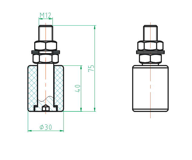 Támasztógörgő, fekete PVC Zn, D30mm, M12 H/04-30-B