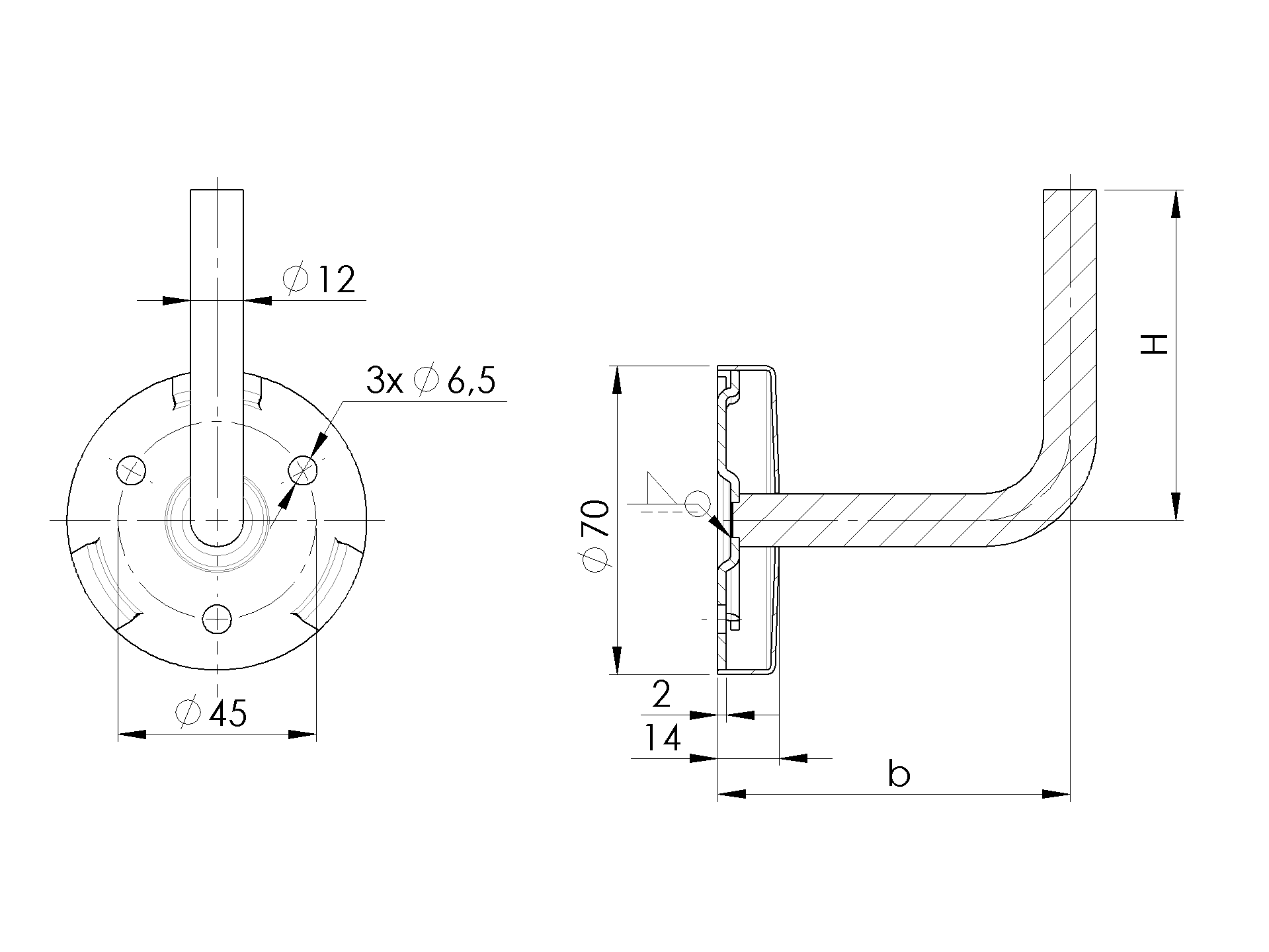 Madlo AISI304, D42,4/L1000mm modular A/M-1000-M