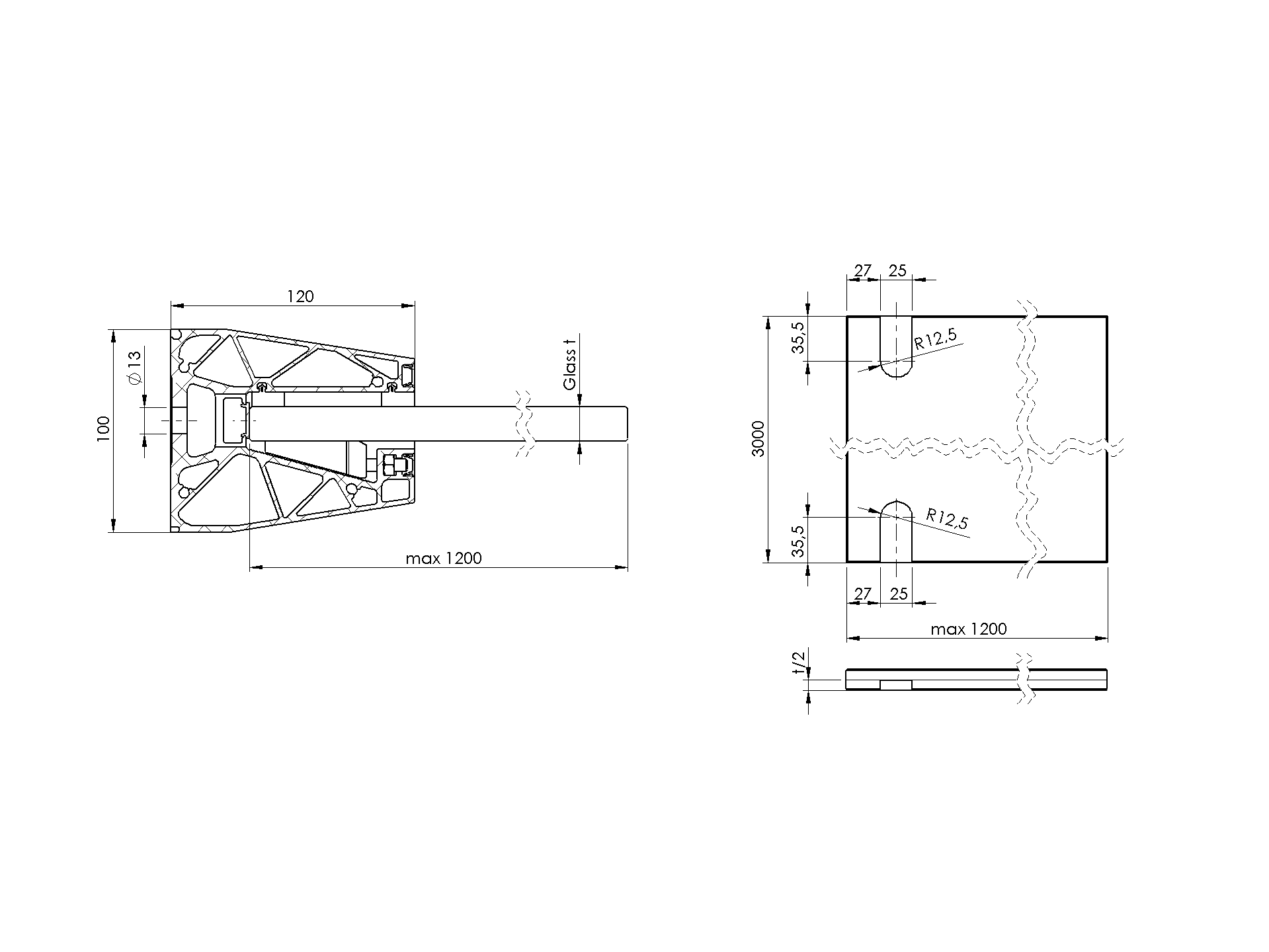 Presklená strieška hliník profil AL/PR7-3000-N-E-SET2
