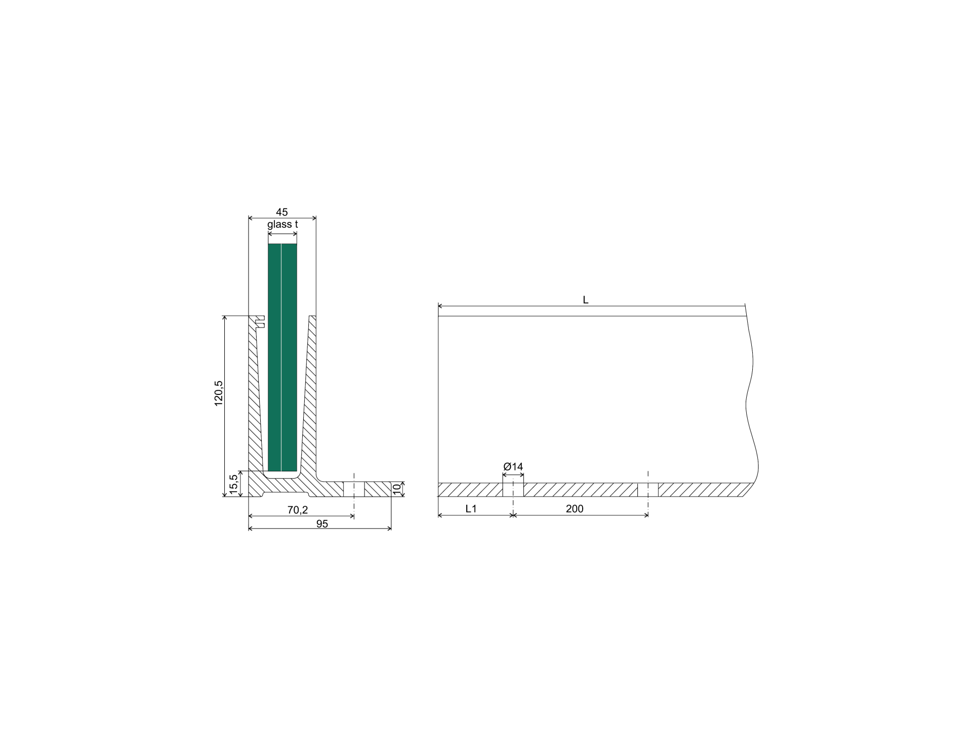 Celosklenené zábradlie-profil-vrchné kotvenie AL/0006-1250-S-E