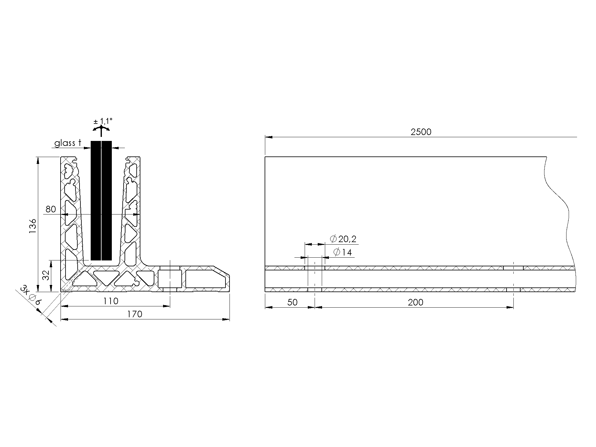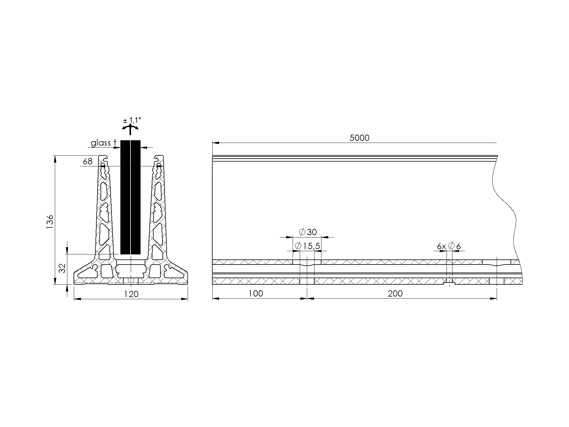 Materiál: Nerez AISI 304, Povrchová úprava: Natural, Kotvenie: Zhora